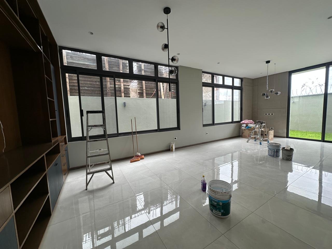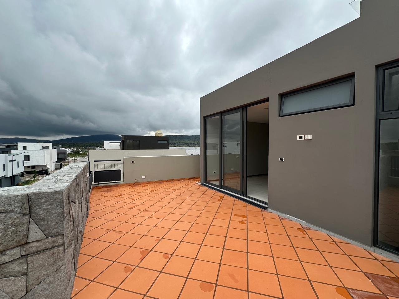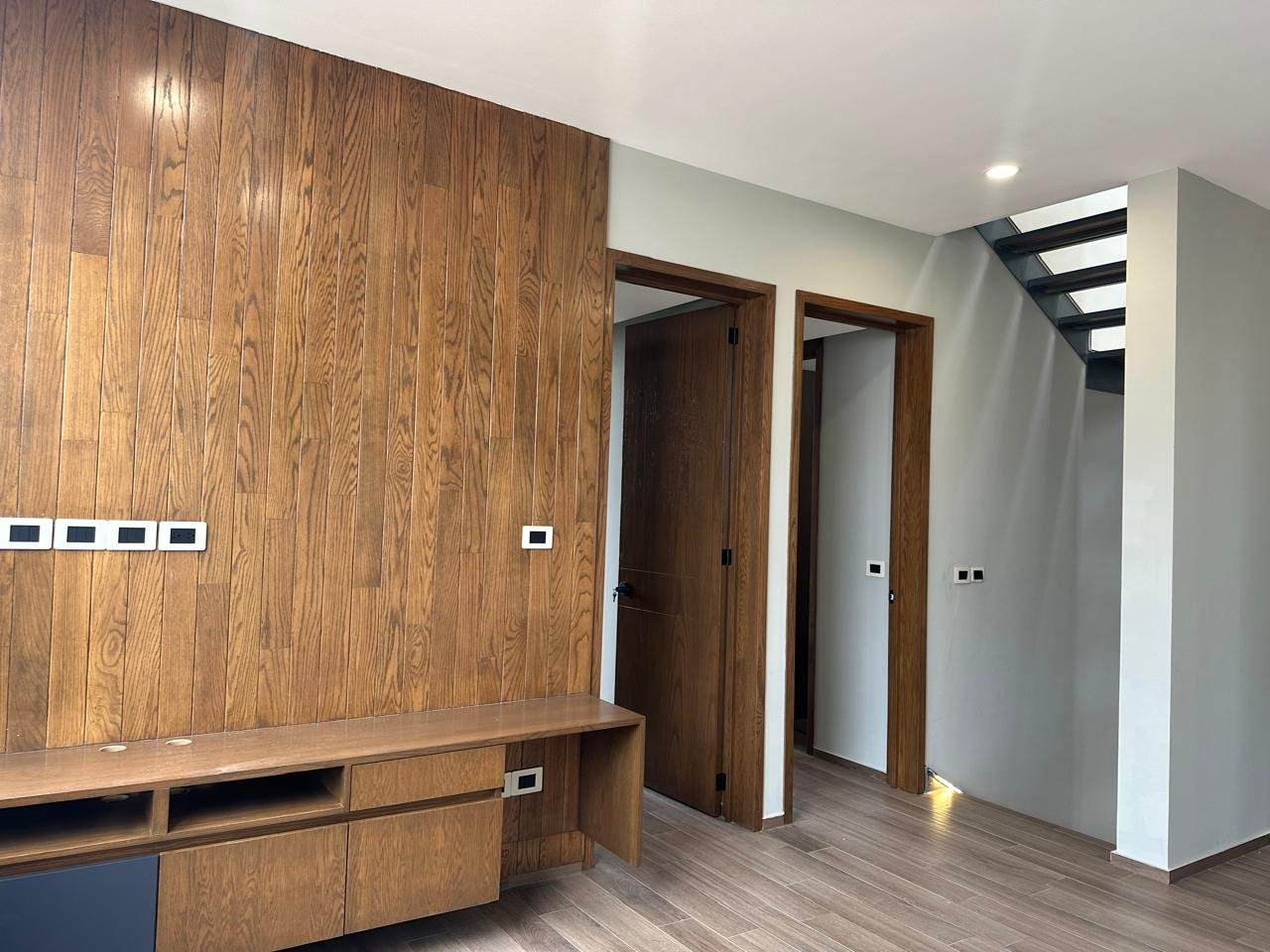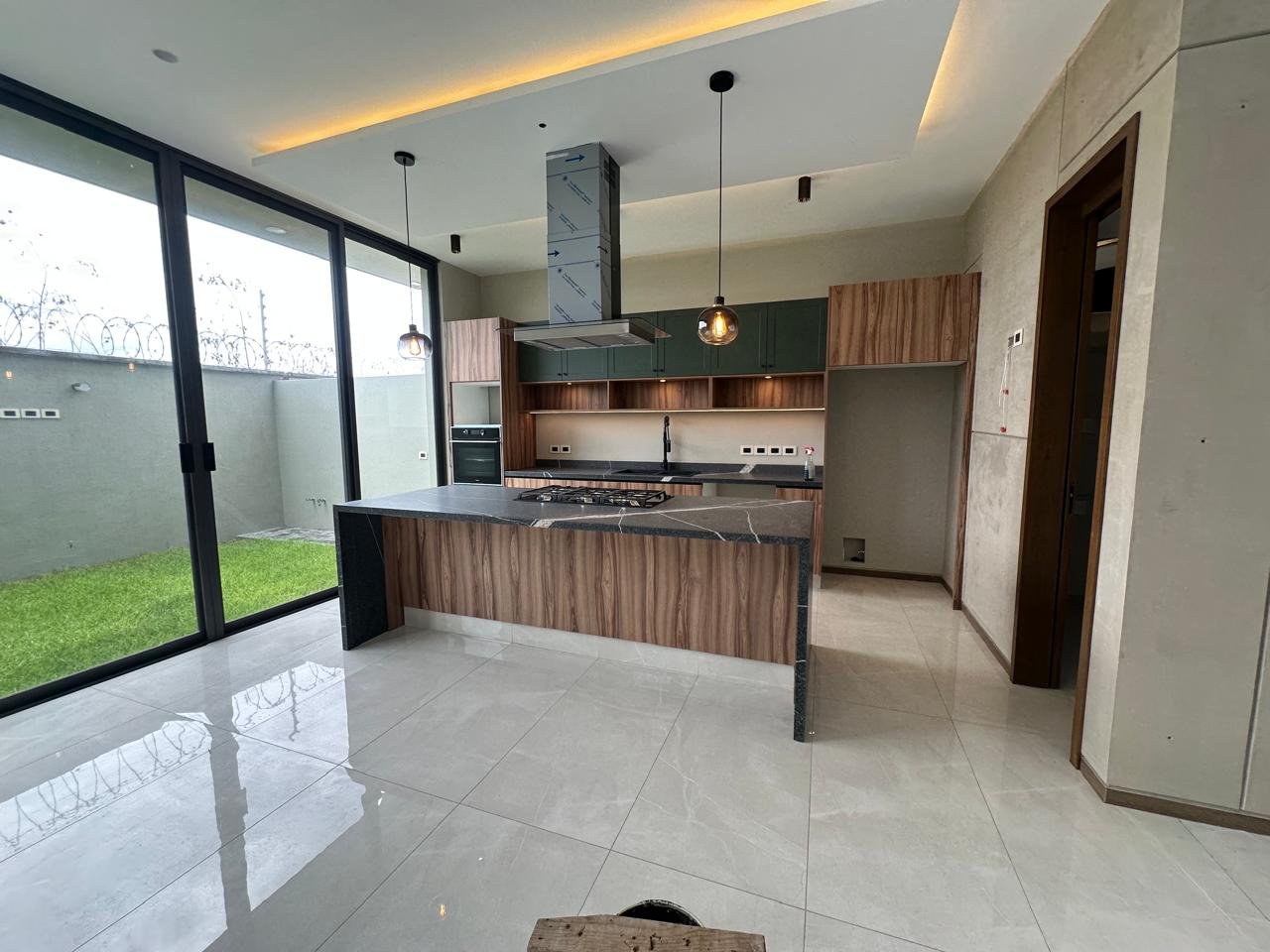 -Planta Baja: Cochera 3 Autos, Sala, Comedor, Cocina equipada con: parrilla, horno y tarja de la marca teka, Baño de visitas, Servidumbre Lateral y Jardín posterior