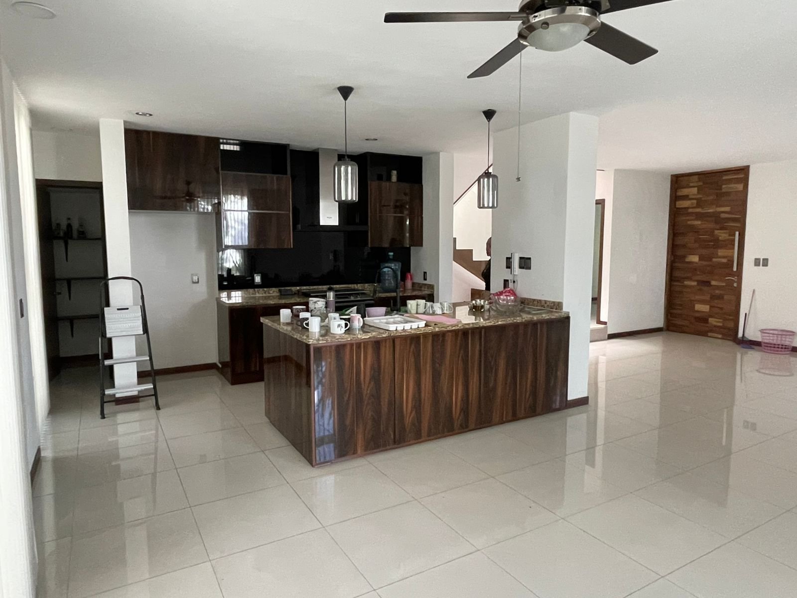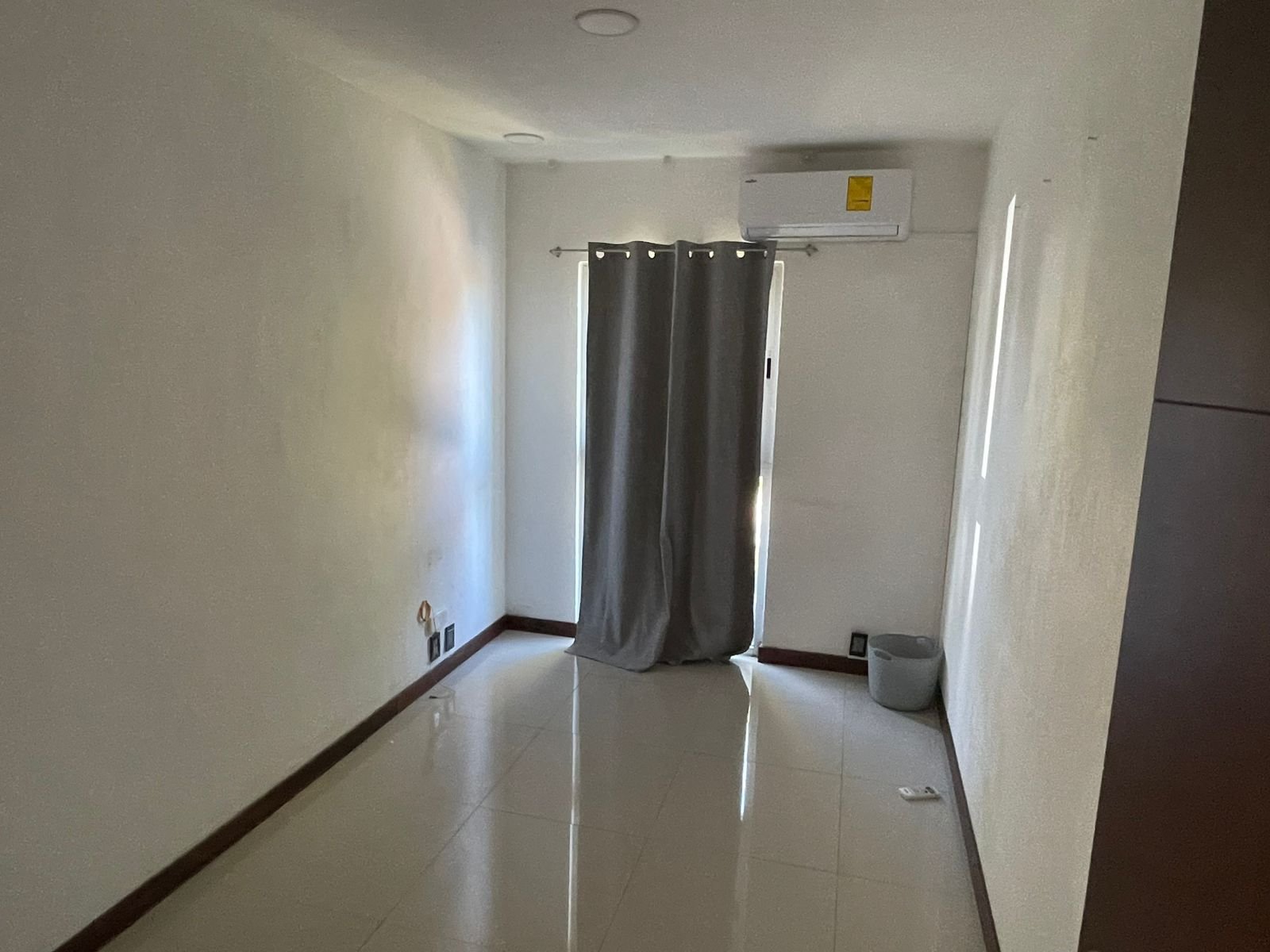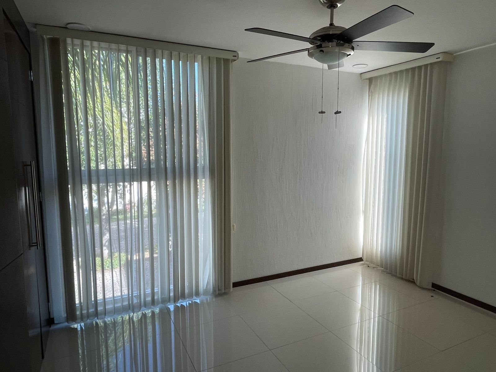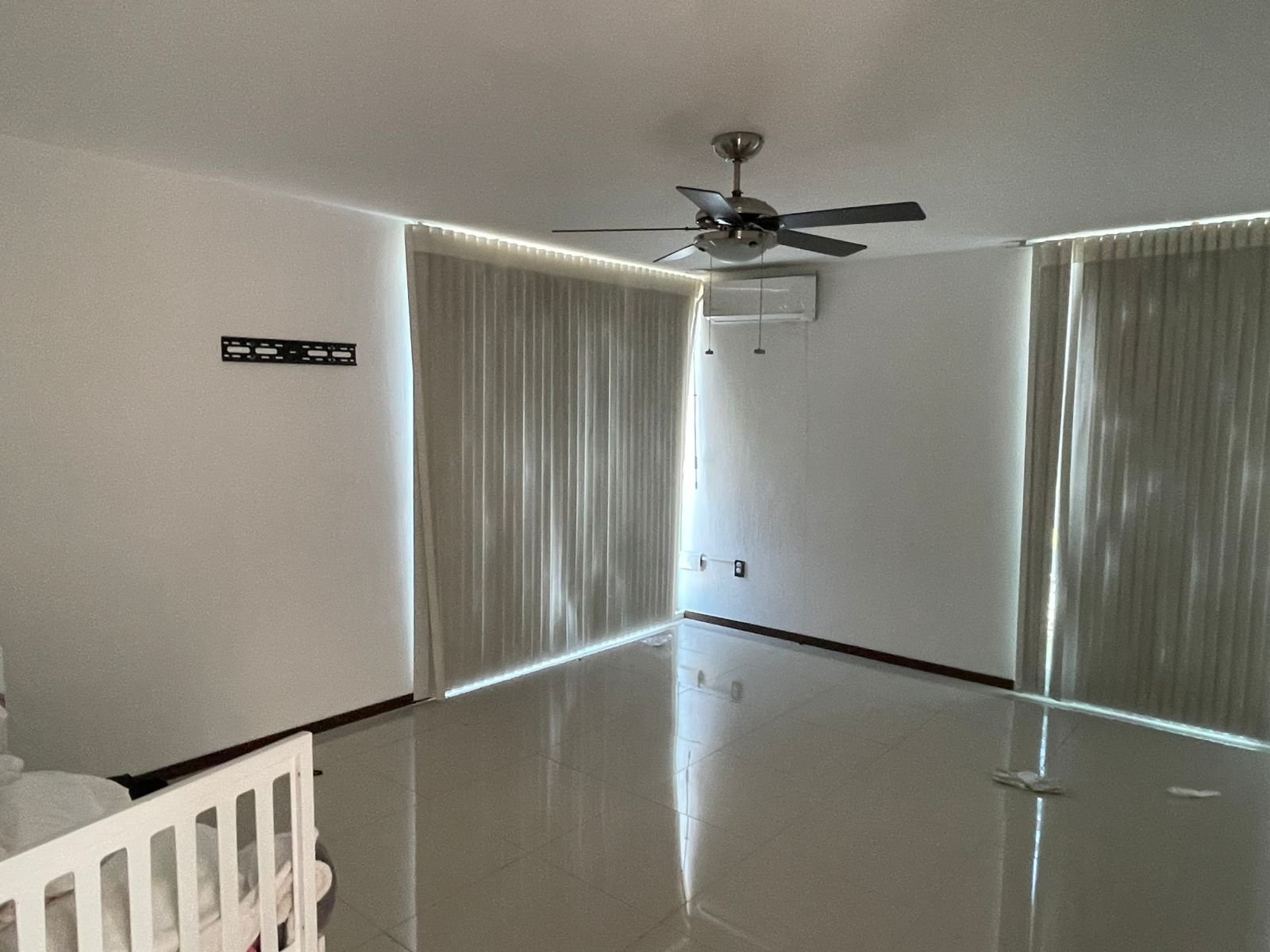 La casa cuenta con cortinas, ventiladores y aire acondicionado